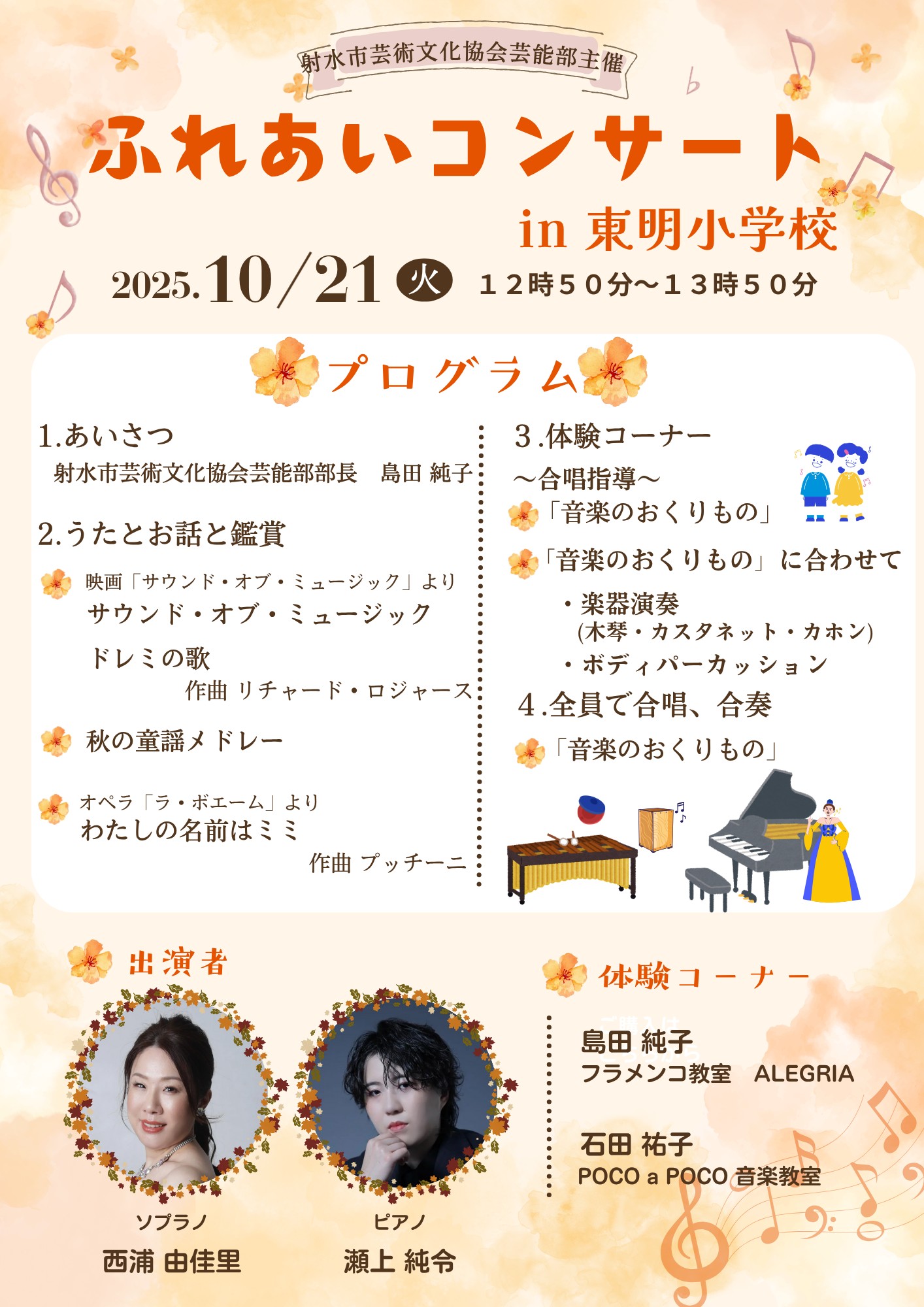●射水市芸術文化協会 ふれあい体験コンサート 学校公演<東明小学校> |