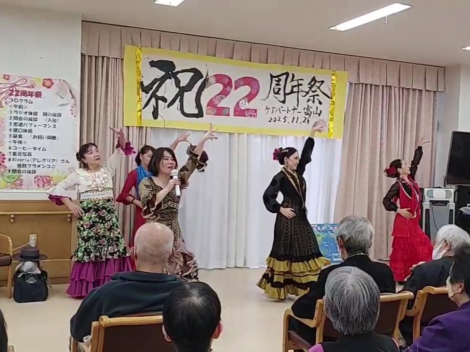介護施設 ケアパートナー富山さんを訪問いたしました。慰問では恒例のマジックショー、スペインやフラメンコのお話、フラメンコの歌や踊りなど、皆さんと楽しい時間過ごすことができました。ありがとうございました! |