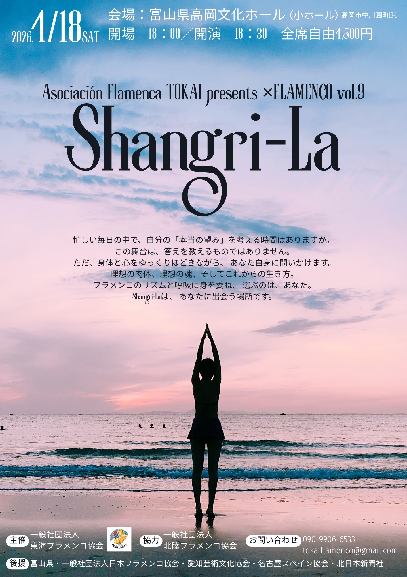 日本フラメンコ協会による人材育成プロジェクトの成果発表公演。石川慶子さんの作品「Shangri-La」に、島田純子が出演いたします。4/18「Shangri-La」富山公演につながるプレ公演としての位置付けにもなるそうです。 |